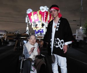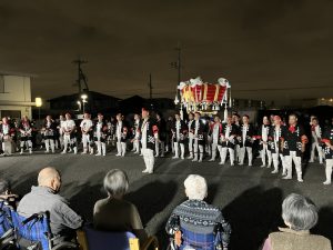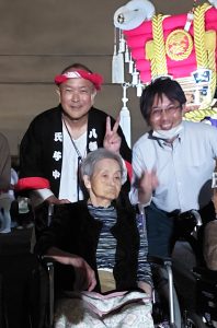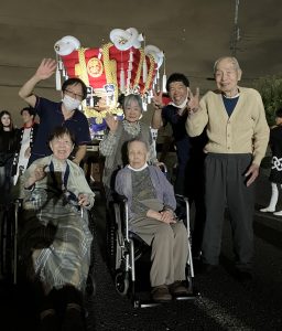 大迫力の布団太鼓を目の前でご覧になり利用者様も手を叩き