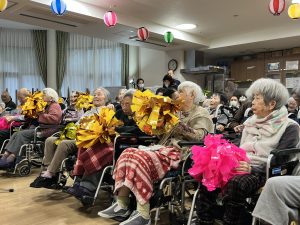 他にもサックスの生演奏にご利用者・ご家族ともにうっとりした表情をされ、「生演奏すごいね!あの人男前やわ!」と女性ファンがたくさん増え、オトン・オカン・チアリーダーズの皆さまによるチアリーディングは、笑いありダンスあり大盛り上がりでした。