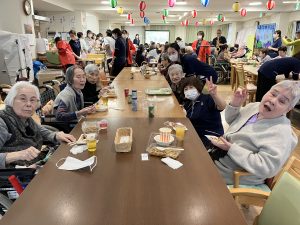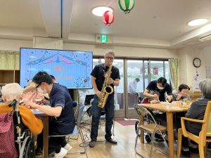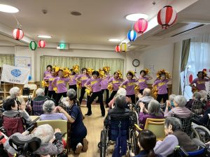他にもサックスの生演奏にご利用者・ご家族ともにうっとりした表情をされ、「生演奏すごいね!あの人男前やわ!」と女性ファンがたくさん増え、オトン・オカン・チアリーダーズの皆さまによるチアリーディングは、笑いありダンスあり大盛り上がりでした。