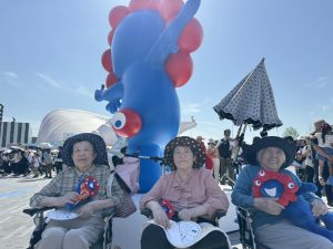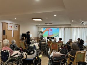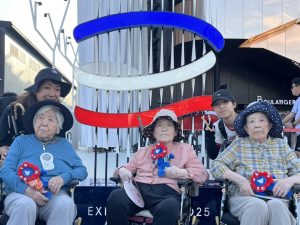 又、万博に行けなかった利用者様にも大阪万博を楽しんで頂きたいと思い、10月9日に3階利用者様に「夢洲の会場から1970年万博を振り返るオンラインツアー」を施設で見て楽しんで頂きました🤗