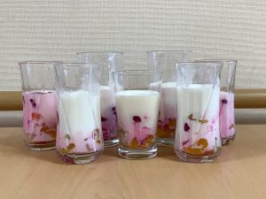 綺麗な色の飲み物は「チェ―」ココナッツミルクがかかった