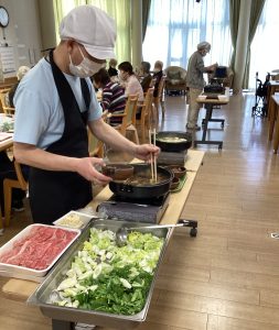 新年会はすき焼きをご用意させていただきました!まずはビール🍺で乾杯✨みなさん良い笑顔です。あつあつのお肉を頬張って「美味しい!おかわりもらおかな」と食欲もマシマシでした。