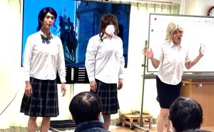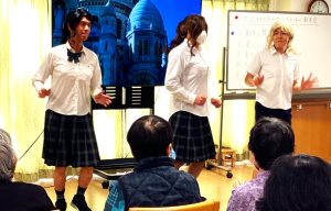 女装でミニコンサート!!職員が華麗に変身(σ≧∀≦)σ「外国の人か??」と興味津々。ノリノリでした。